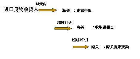 根据《 海关法》的有关规定,进口货物的收货人或其代理人应在运输工具申报进境之日起14日内向海关 申报,逾期 海关将依法征收一定数额的滞报金。